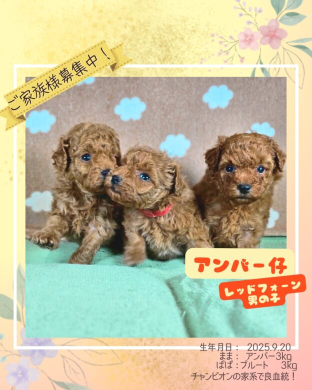 トイプードル・レッドフォーン男の子3兄弟 アンバーBaby