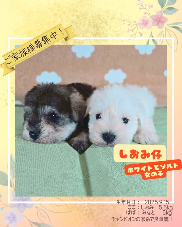 ミニチュアシュナウザー・ソルトとホワイトの姉妹 しおみBaby10月15日