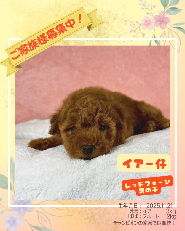 ご家族様決まりました!トイプードル・レッドフォーン男の子 イアーBaby