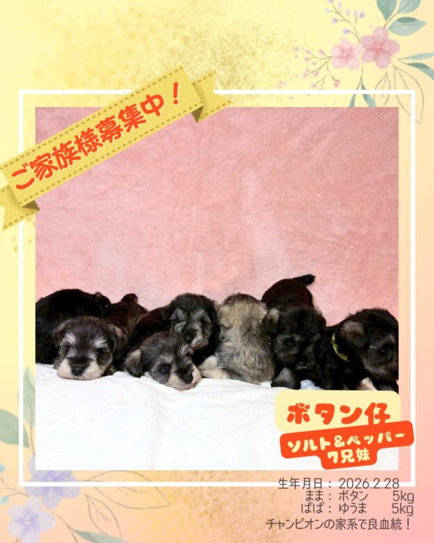 先行予約&見学開始!ミニチュアシュナウザー・ソルト&ペッパー7兄妹!ボタンBaby04月03日