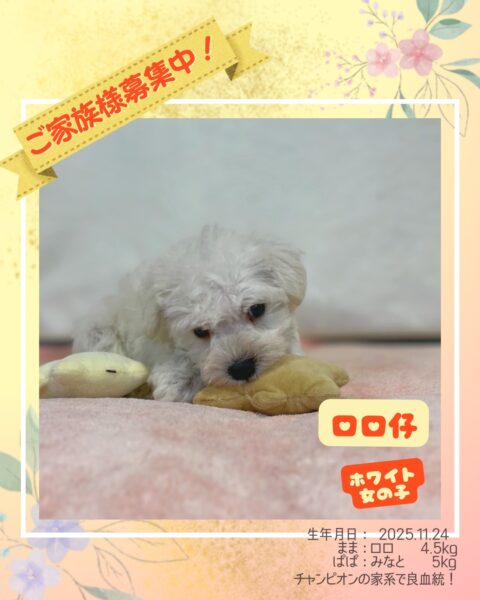 初期費用として、15,000円(ワクチン、マイクロチップ、健康診断等)が別途かかります。